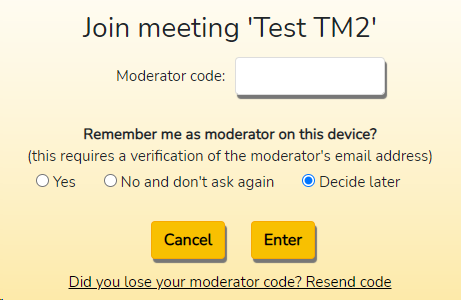 Moderators If you are the moderator of the meeting, after creating the meeting in HCL Notes, you will receive a confirmation email from Notes2conf which contains a moderator password. As a moderator you have two options to start the conference: